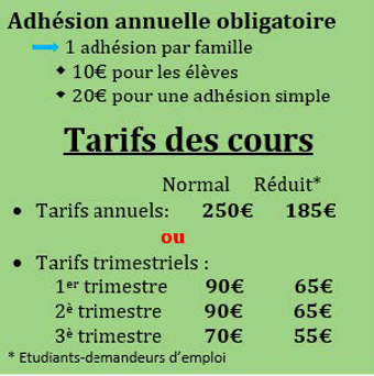 Kits supports de cours (manuels de cours et exercices) : 28 €